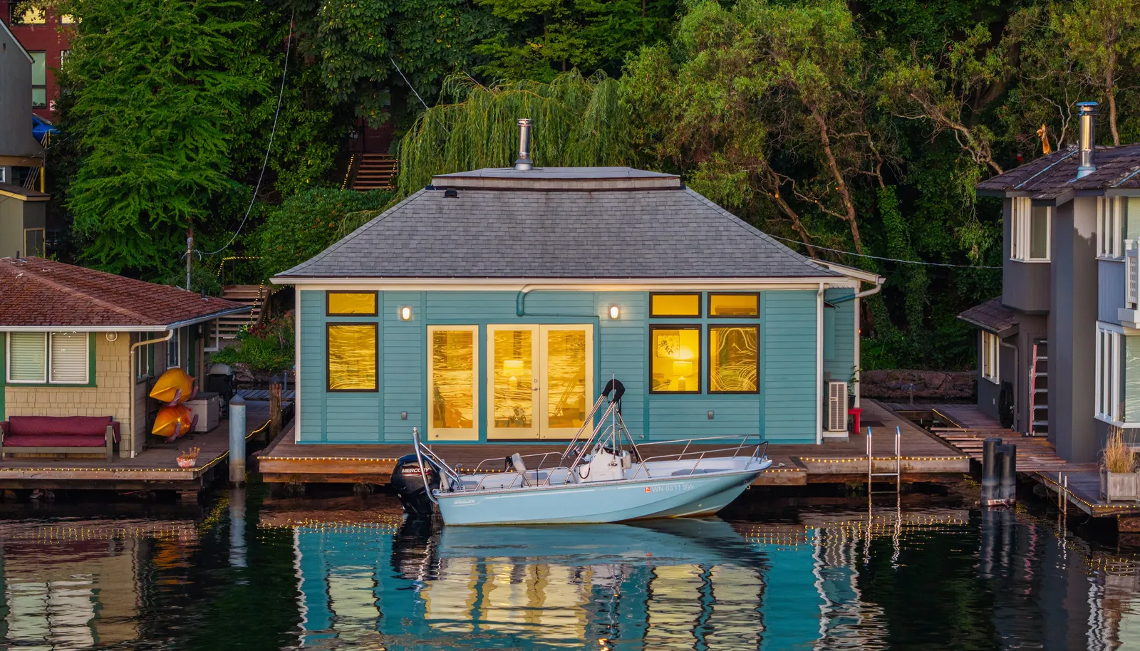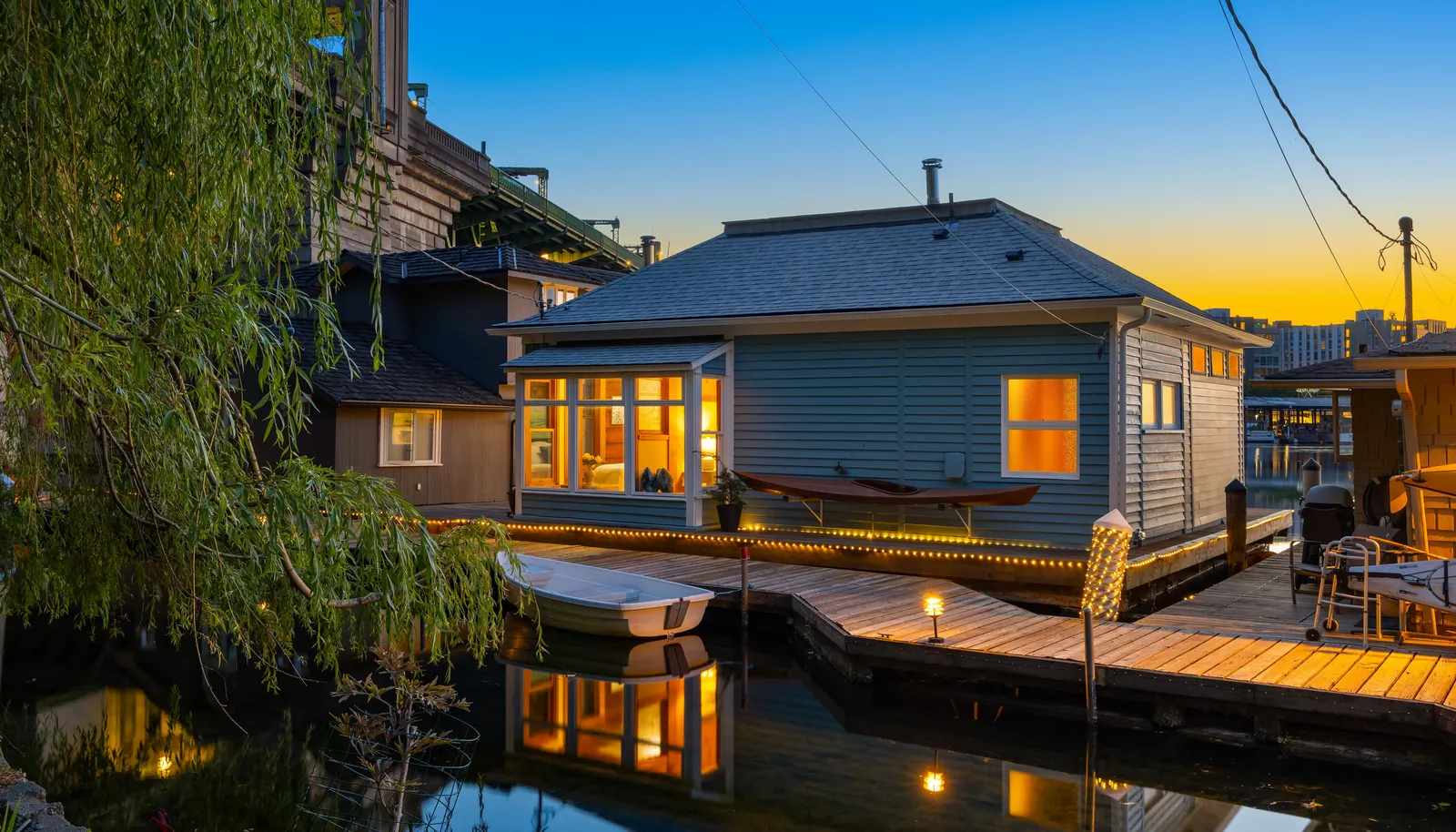 Rare, end-of-dock floating home available for the 1st time in 50 years with wide-open views to enjoy stunning sunrises, moonrises, and daily...